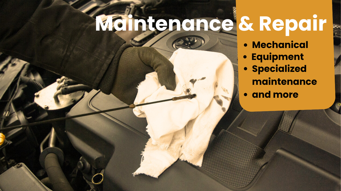 Let us handle your maintenance and repair needs—whether it's mechanical systems, specialized equipment maintenance, or routine upkeep, we’ve got it covered. Our comprehensive services include equipment diagnostics, preventive maintenance, and expert repairs to ensure everything runs smoothly. From industrial machinery and HVAC systems to office equipment and custom machinery, we provide all the support you need to keep your operations efficient and reliable.