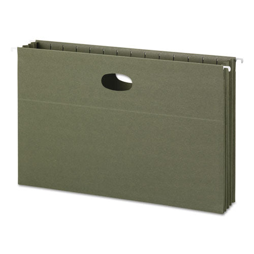 100% Recycled Hanging Pockets with Full-Height Gusset, 1 Section, 3.5" Capacity, Legal Size, Standard Green, 10/Box-(SMD64326)
